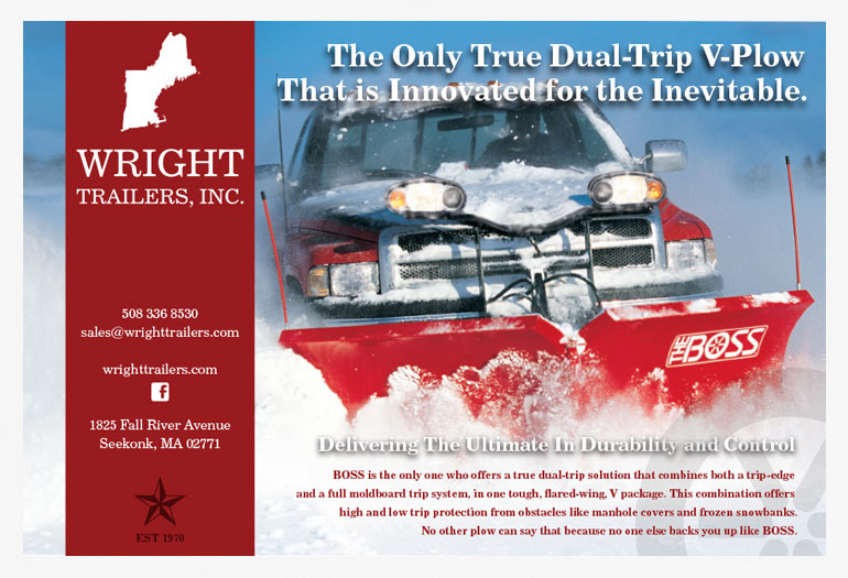 This half page ad was designed for Wright Trailers to describe the plows that had in stock for the upcoming season.